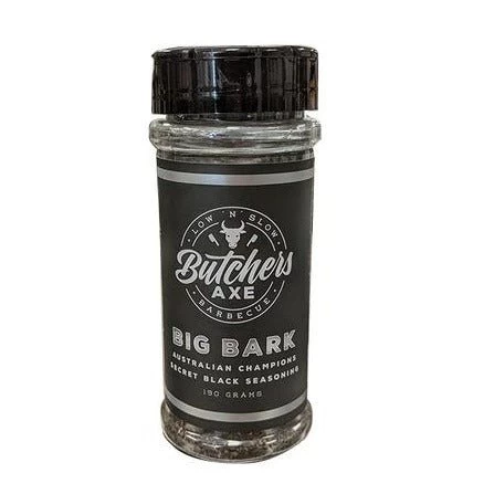 Knock your next cook out-of-the-park with the balanced taste and bold appearance of BIG BARK! This proudly Australian made and owned seasoning gets its distinct colour from Activated Charcoal, which wows the judges at competition and at home! BIG BARK’s tried and tested secret savoury flavour profile has been responsible for multiple trophies, including the elusive PERFECT SCORE!