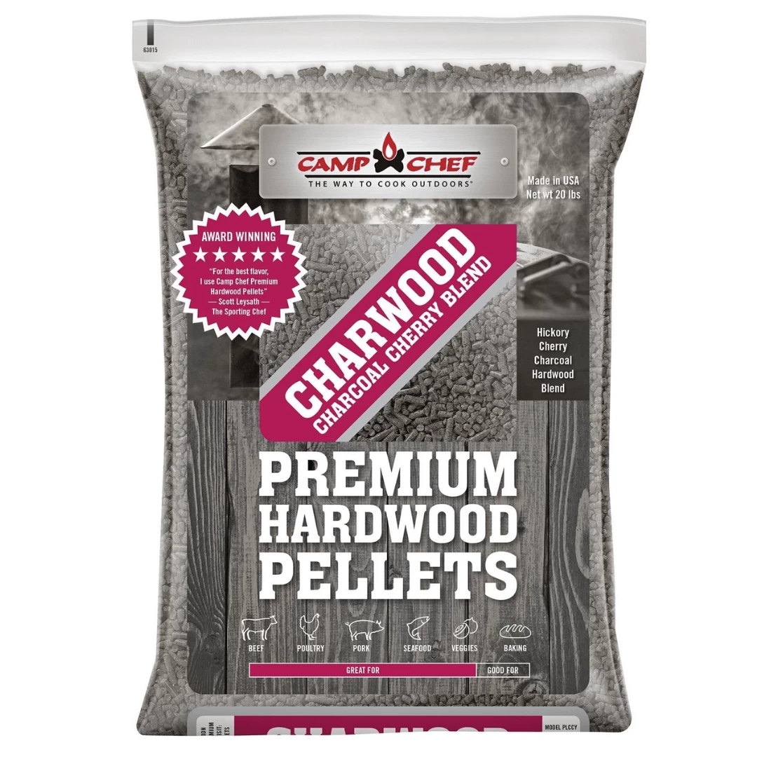 Charcoal Pellets……ย The Charwood Charcoal Cherry premium hardwood pellet blend offers better flavor and a more efficient burn. Why? Unlike most pellets available, Camp Chef pellets are not a byproduct but rather 100% pure virgin hardwoods. No oils, chemicals or binders added. The kiln dried process creates low moisture content for a very dry, hot burning pellet. This means it burns less to maintain your desired temperature, giving you more pellets for your next barbecue and less ash to clean. These pure virgin hardwood pellets will give you consistent results bag after bag. Enjoy an authentic charcoal taste with a sweet cherry and hickory flavor.