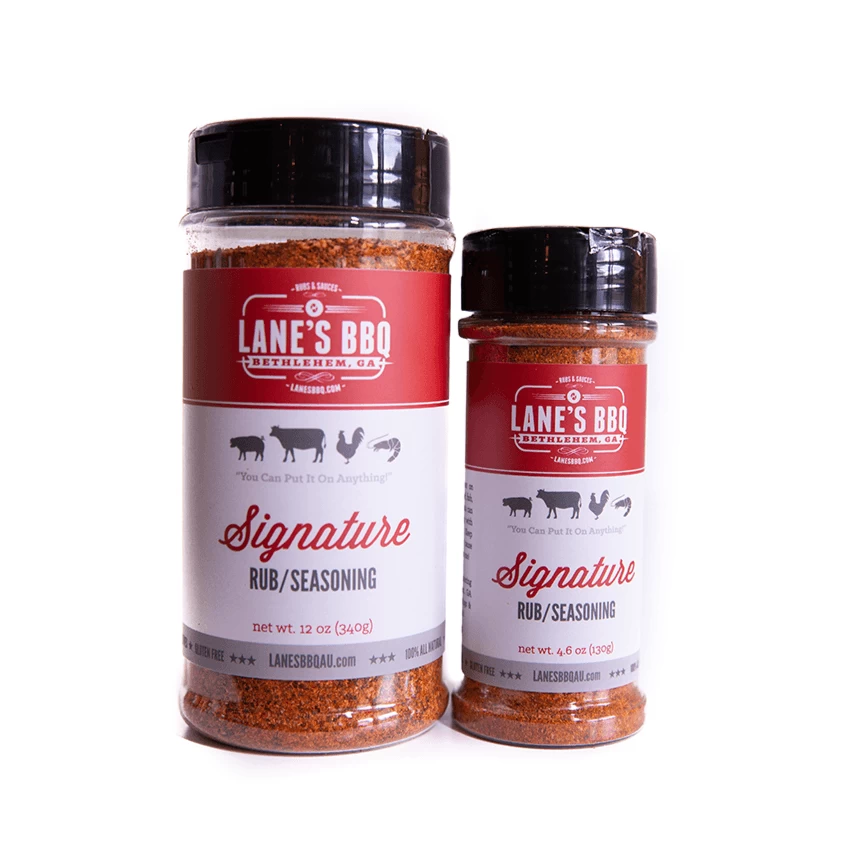 Laneโs Signature rub is great on everything!ย Chicken pork beef fish shrimp potatoes eggs & pasta can be ramped up to BBQ quality with a couple shakes and a pinch.ย Keep away from inedible objects โcause you may be tempted to eat that too!