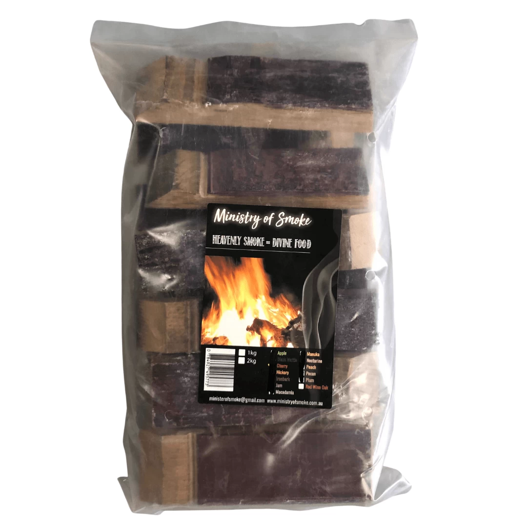 Ministry of Smoke provides locally grown and harvested Wood to make your next BBQ unique with this red wine oak coming from Tasmania. Whether you’re using charcoal, or a smoker box in a gas BBQ – smoking wood will add an extra level of flavor to your next cook!Â