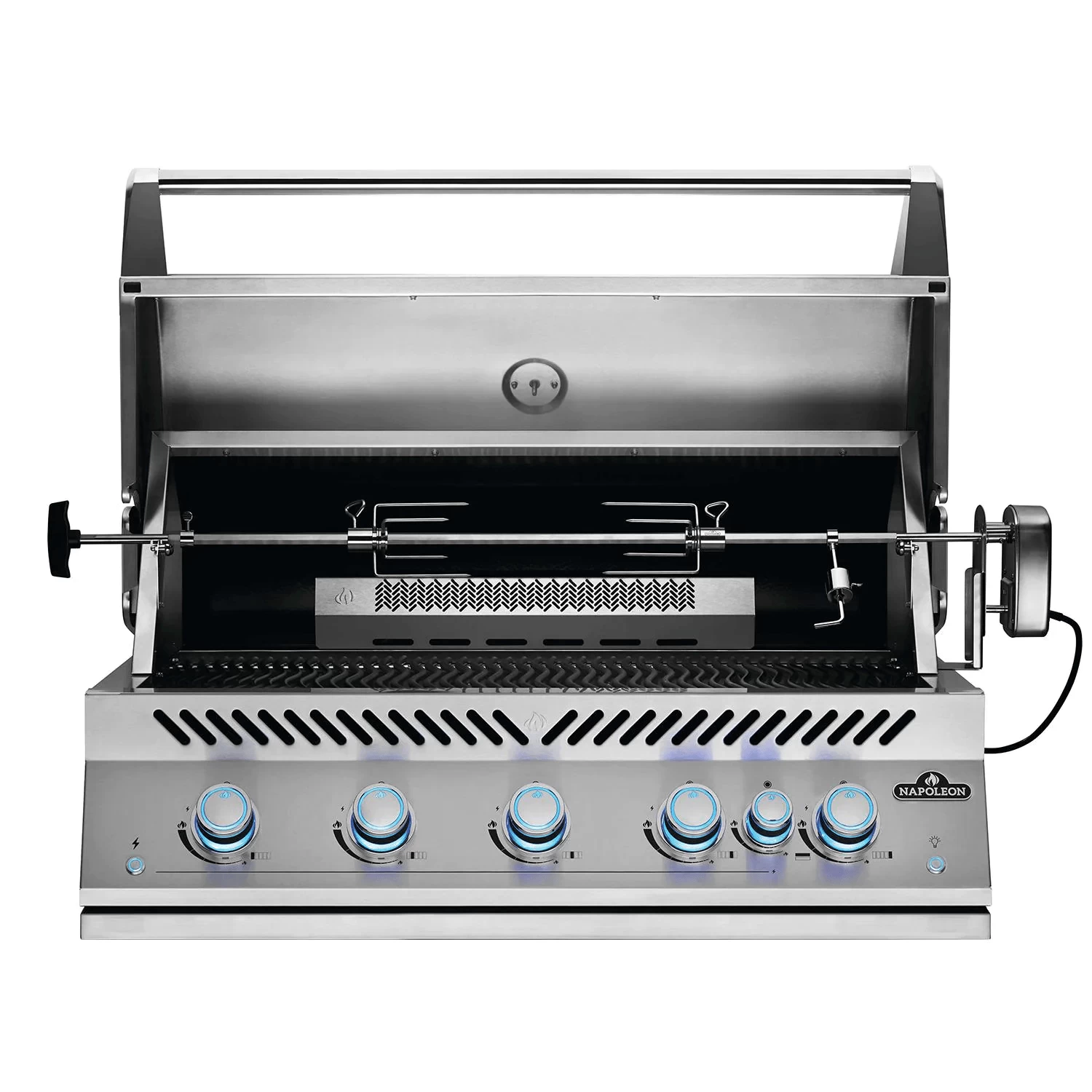 Never be without your favorite grilling accessory, the integrated rotisserie kit storage keeps everything close by.