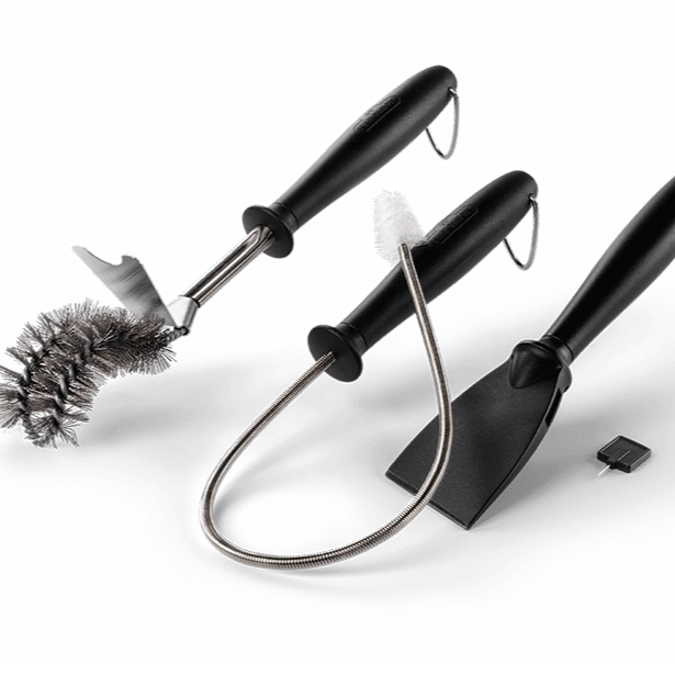 A deep clean is a large part of your barbecue’s seasonal maintenance, make that task easier with the Napoleon Gas Grill Cleaning Toolset. Set includes an angled cooking grid cleaning brush with a grid scraper, a venturi tube cleaning brush, a firebox scraper that won’t damage the steel, and a burner port cleaner that is stored in the firebox scraper.