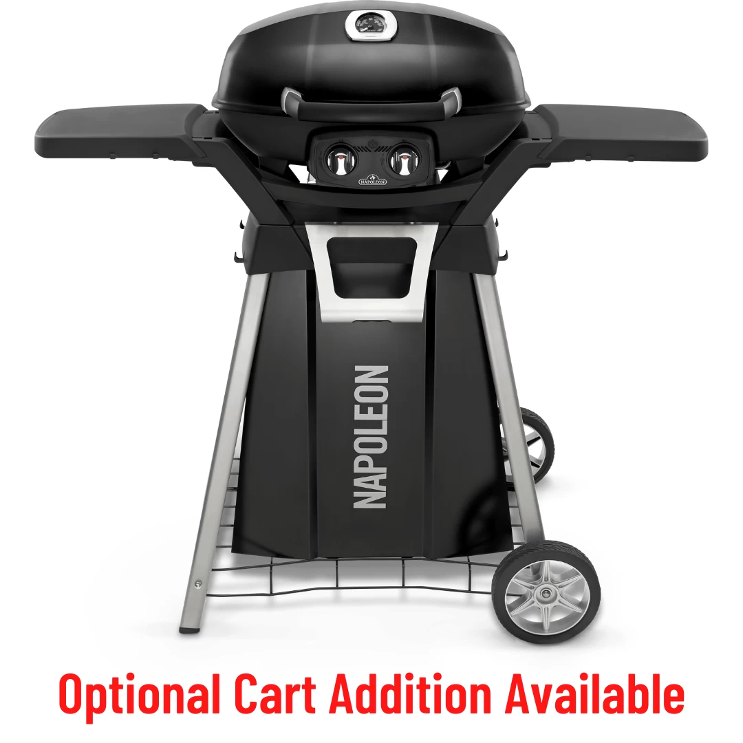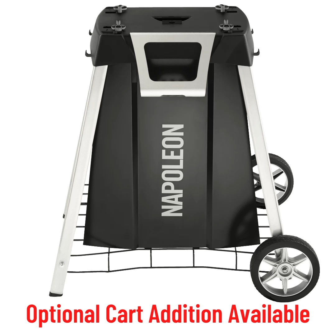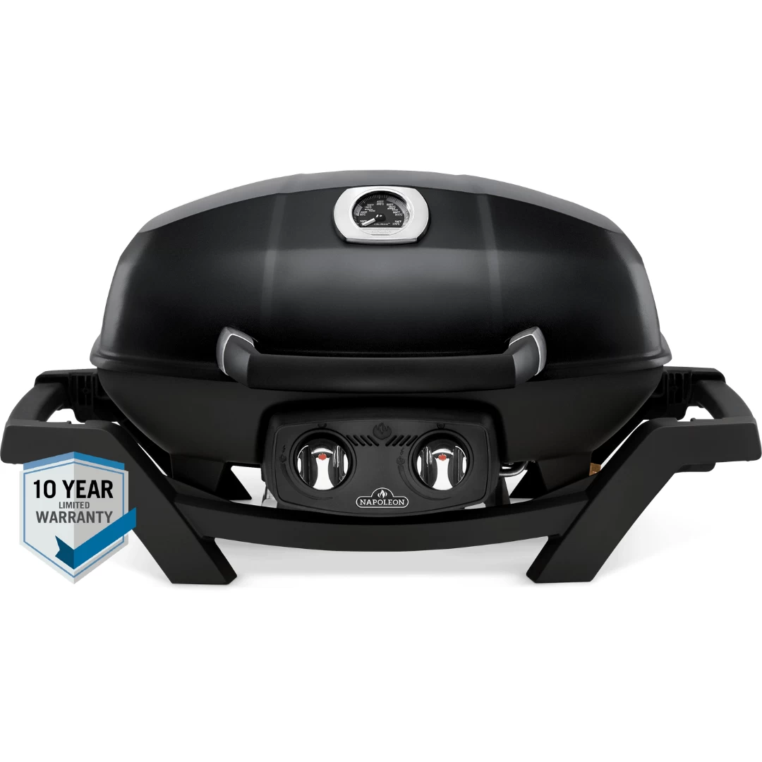 Napoleon’s TravelQโข PRO285 Portable Gas Grill packs a punch. Grill up to 20 hamburgers at once on the 285 square inches of cooking area. No setup or prep required, just add propane. The stylish all-black finish with chrome details will go with your outdoor decor. The cast aluminum, high-topped lid design of this portable grill lets you take portable grilling to the gourmet level. Roast whole chickens or turkeys, pork and even prime rib. This little grill can do it. Using the dual stainless steel burners, you have precise control over the temperature, just like on Napoleon’s full sized grills. Get the TravelQโข PRO285 up to high temperatures for the perfect sear; you’ll know it’s a Napoleon with the iconic WAVEโข cooking grids for those distinctive sear marks. Like your favorite cast iron skillet, the porcelainized cast iron cooking grids heat evenly and provide a non-stick surface for your food, seasoning like a cast iron skillet. You can’t beat this portable, professional package.