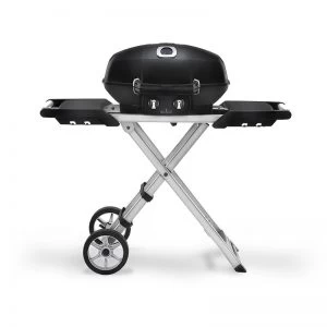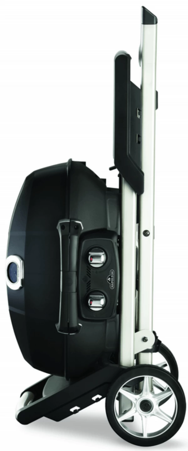 Napoleon’s TravelQโข PRO285 Portable Propane Gas Grill with scissor cart can grill up to 20 hamburgers at once on the 285 square inches of cooking area. The stylish all-black finish with chrome details will match any outdoor decor. The cast aluminum, high-topped lid design lets you take portable grilling to the gourmet level. Roast whole chickens or turkeys, pork and even prime rib; this little grill can do it. Using the dual stainless steel burners, you have precise control over the temperature, just like on Napoleon’s full sized grills. High heat searing is a snap and you’ll know it’s a Napoleon with the iconic WAVEโข cooking grids for those distinctive sear marks. This grill has everything you need for perfect portable grilling anywhere, the nimble cart features all-terrain wheels, easy folding, setup, compact storage, and propane tank straps. This grill is perfect for any adventure. You can’t beat this professional grill in a portable package.