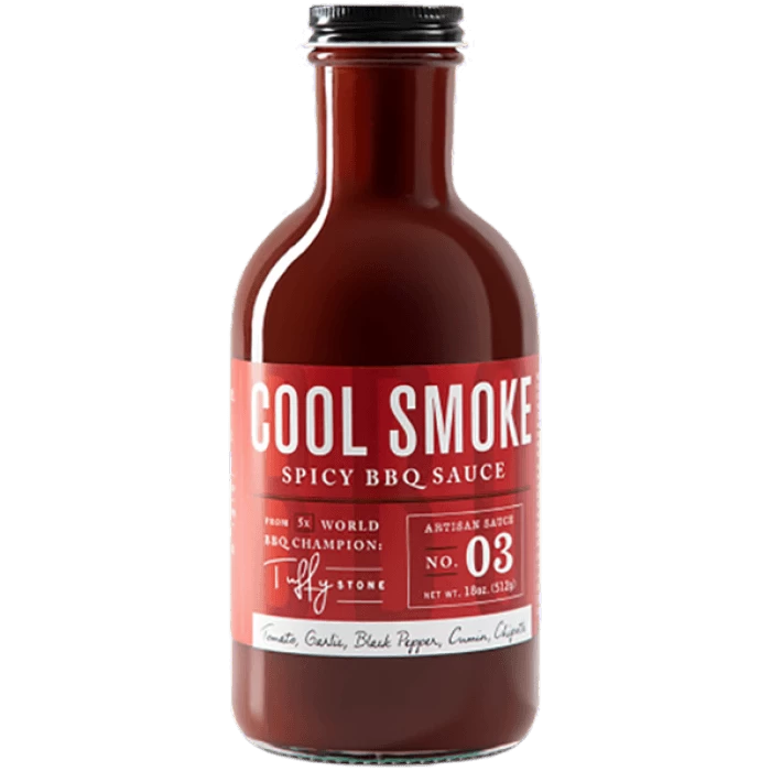 Tuffy Stone Cool Smoke BBQ Red Sauce with tomato, garlic, black pepper, cumin and chipotle was proudly crafted with experience. This blend is a classic tomato bbq sauce with an extra kick!
